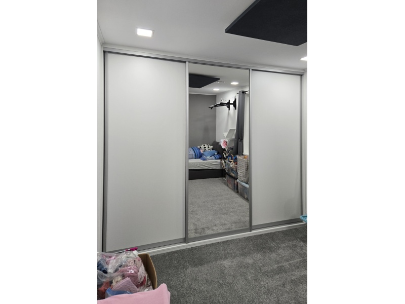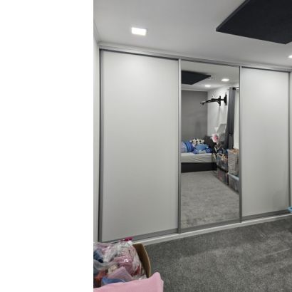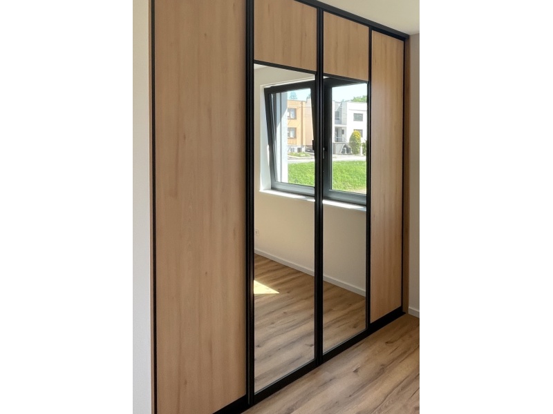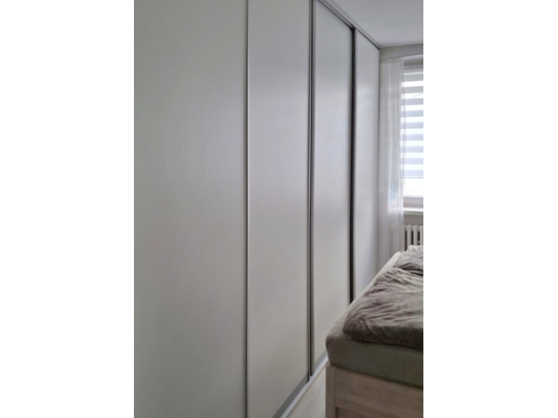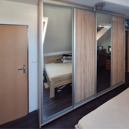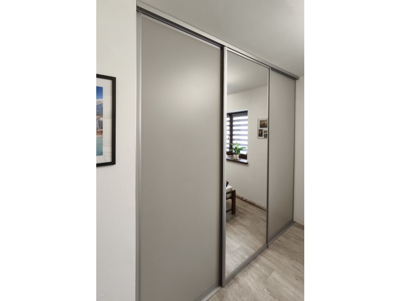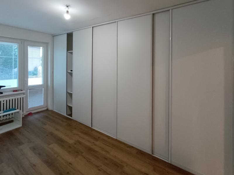 - Pantové dveře – hodí se do širších pokojů, umožňují plný přístup do celé šířky skříně.