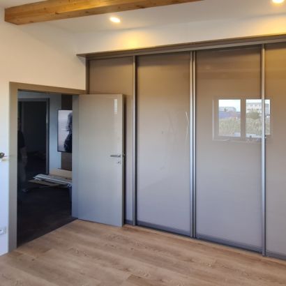 - Posuvné dveře – ideální pro menší ložnice, kde nechcete zabírat prostor při otevírání.