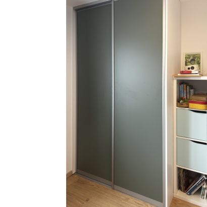 - Pantové dveře – vhodné tam, kde je dostatek místa před skříní.